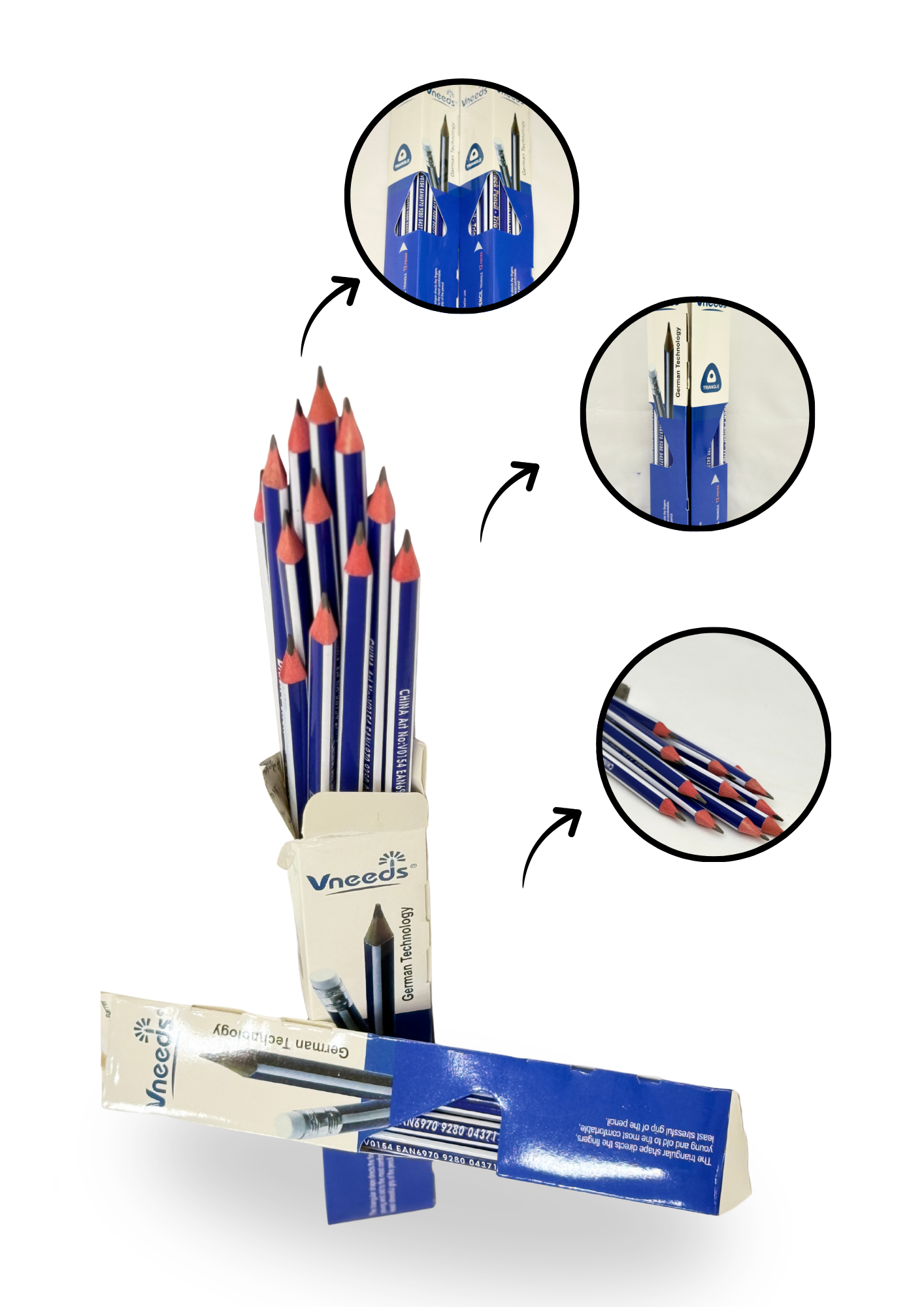 "High-quality simple pencils for smooth, consistent writing — perfect for school, office, or everyday use. "Triangle-shaped pencil with an easy grip design for comfortable writing and better control."