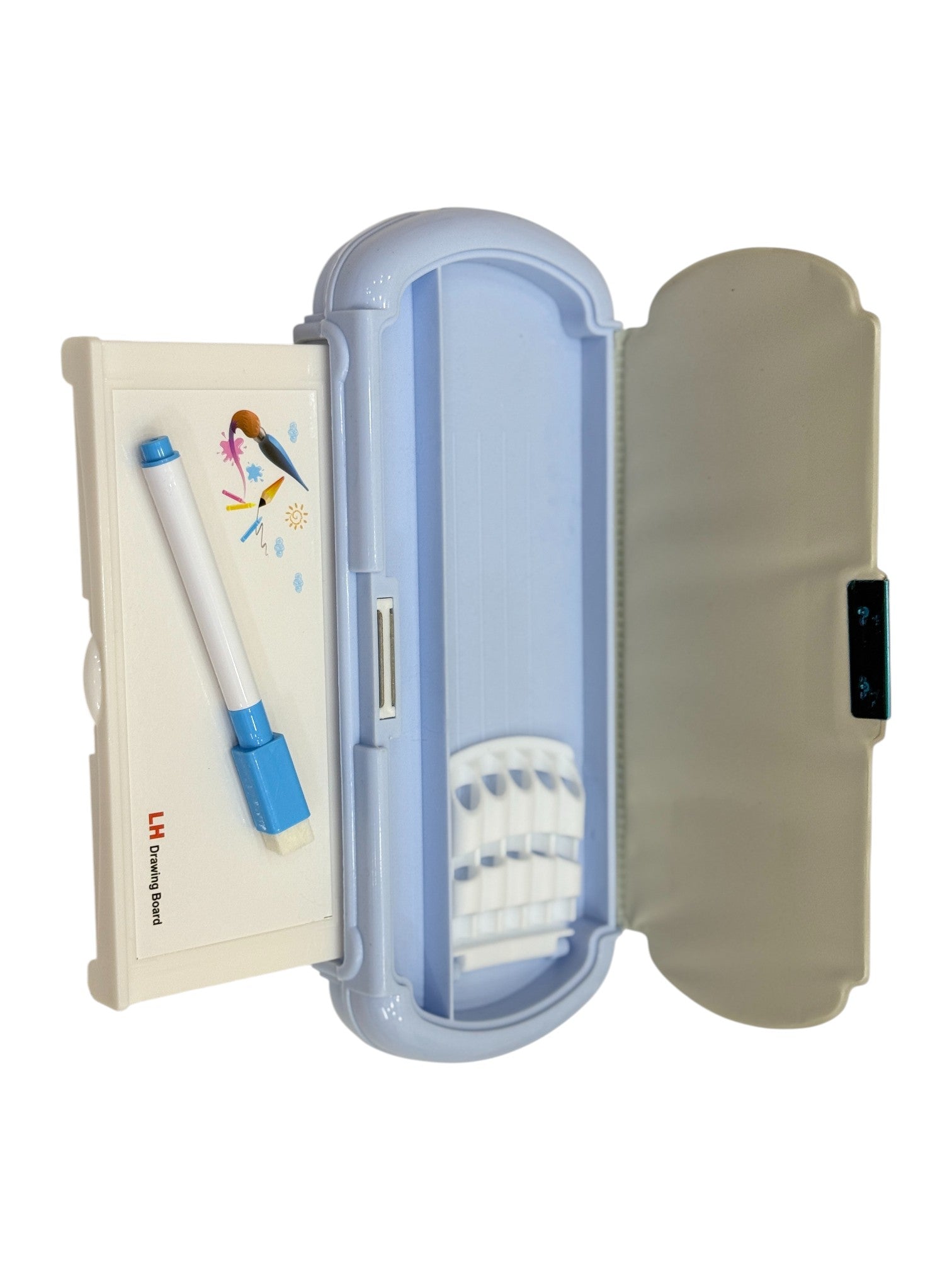 "Innovative pencil box with a mini whiteboard and marker— perfect for quick notes, doodles, and learning on the go."