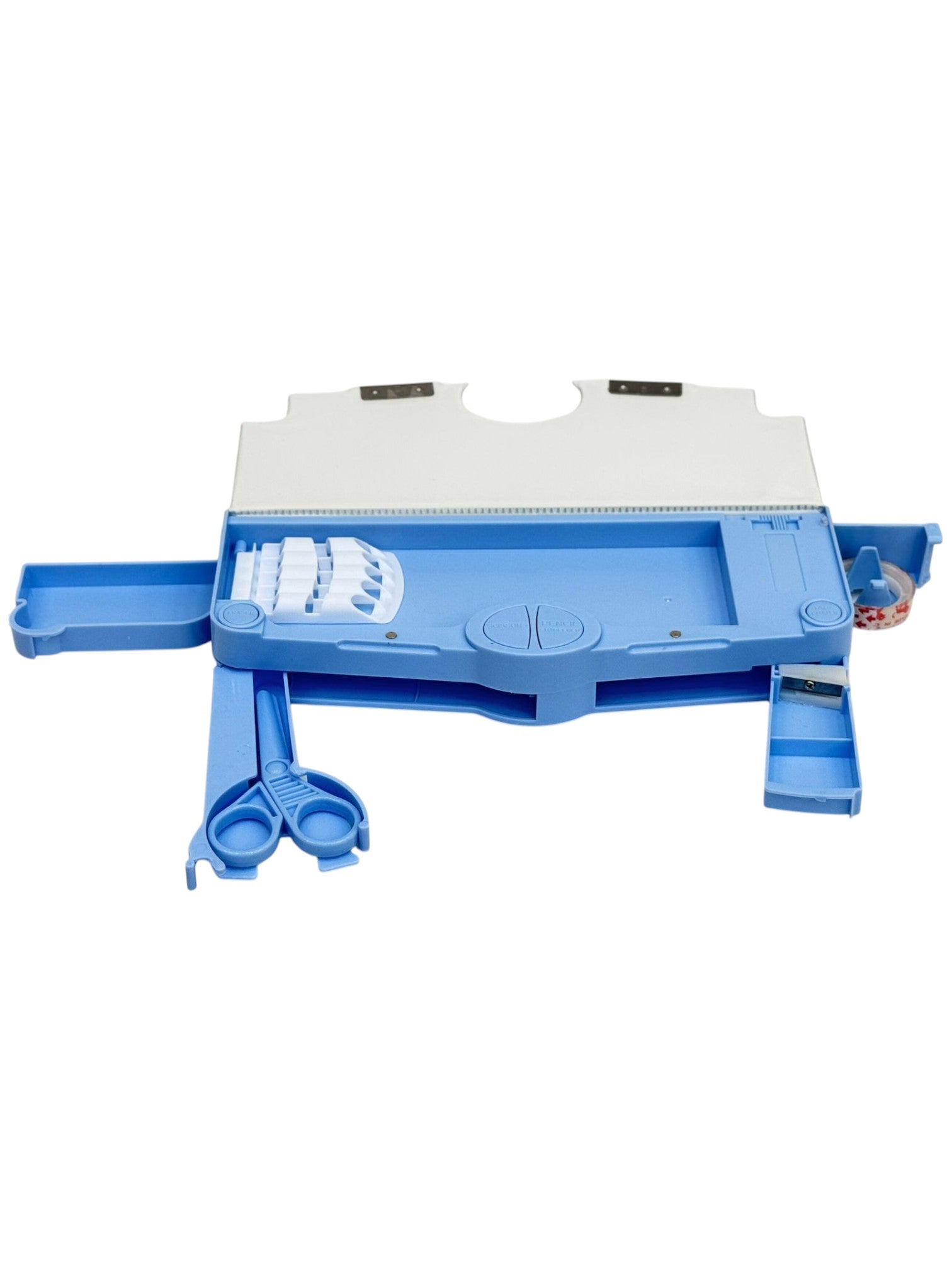 "Practical pencil box with built-in scissors — keeps your stationery and cutting tool safely in one place."